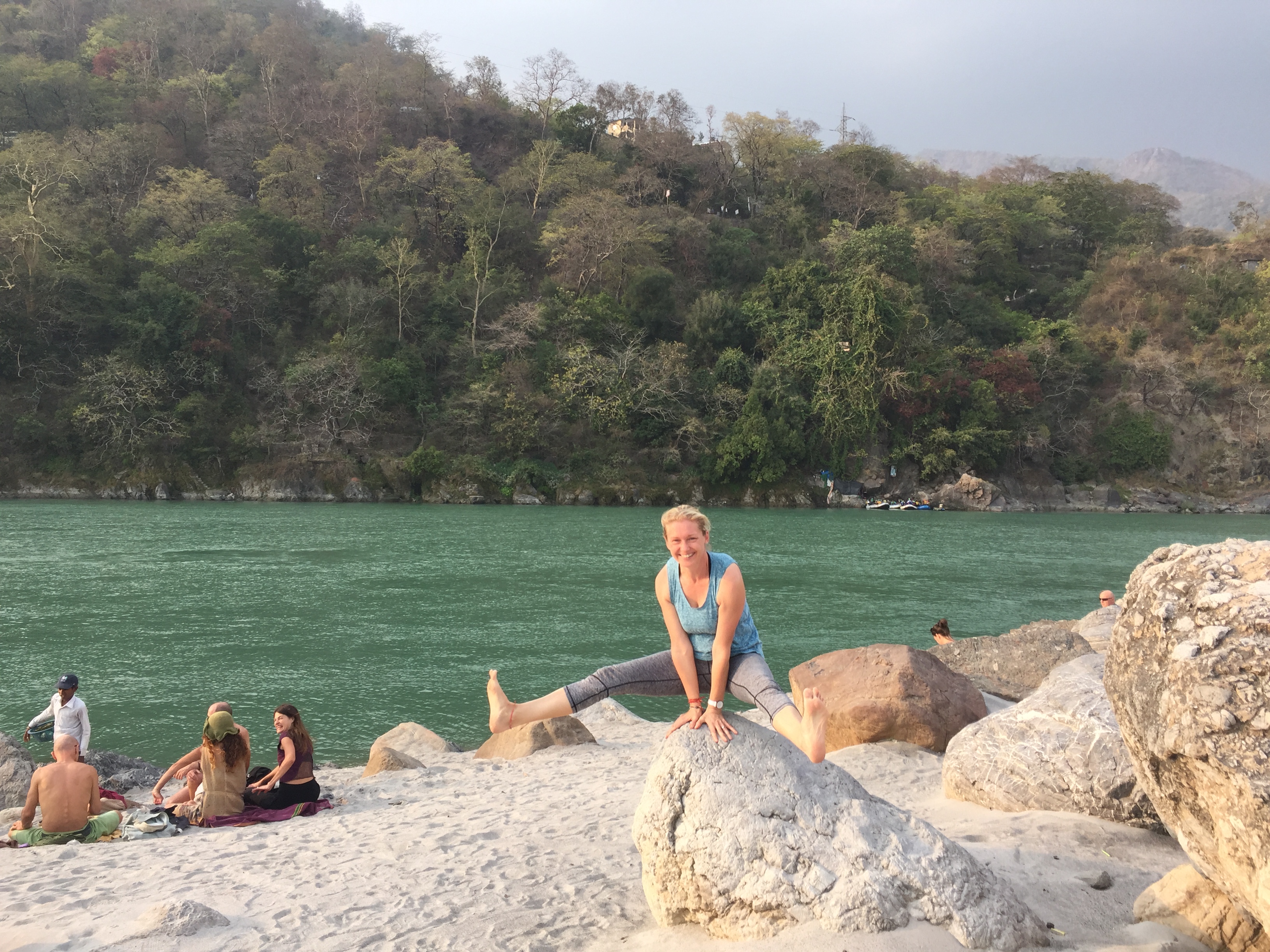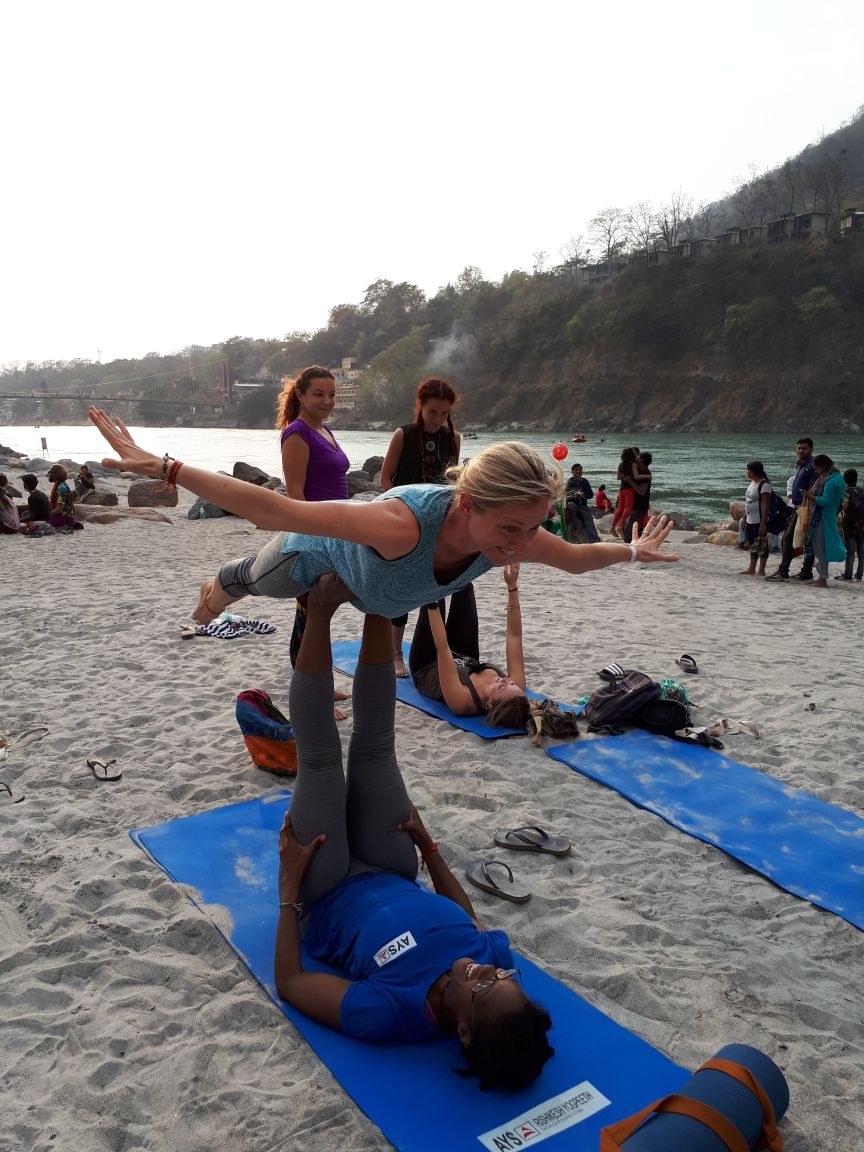 Rishikesh überzeugt mit einer wunderschönen Landschaft am Ufer des Ganges, es gibt sogar Sandstrände, ich geniesse auf meinen Mittagsspaziergängen die meist klare Luft und beobachte die Yogis, die an einem der Strandabschnitte regelmässig Acroyoga praktizieren und sich zum Musizieren und Mantra singen treffen.