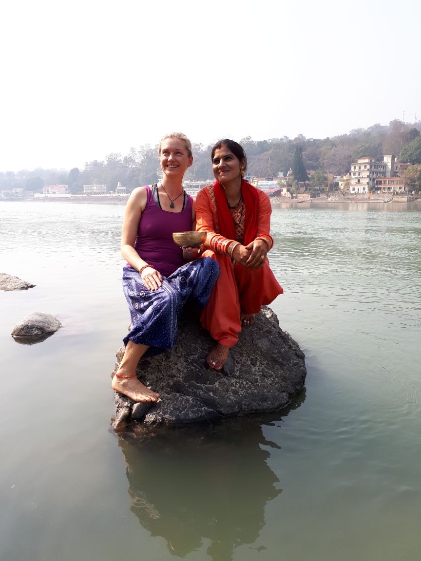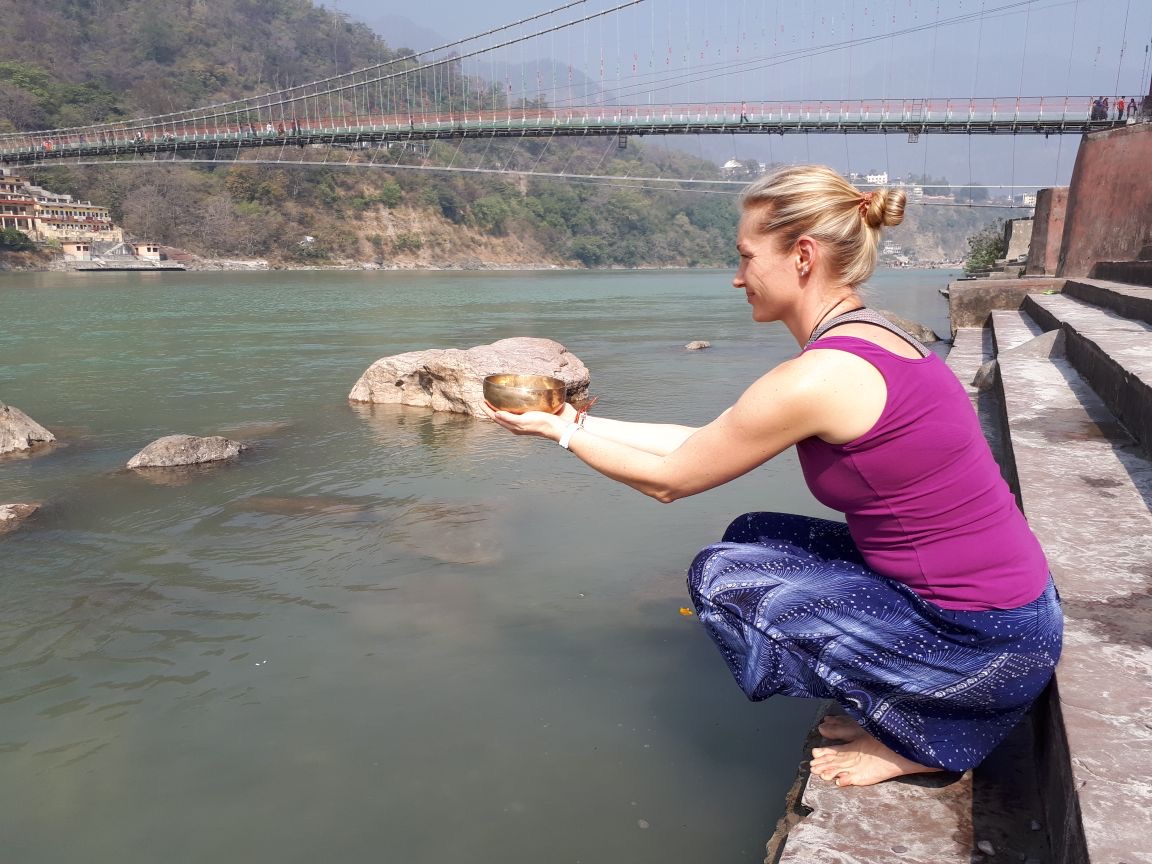 Rishikesh ist so besonders, hier laufen die heiligen Kühe auf der Strasse rum, Gehwege gibt es eh keine, Affen fauchen mich an, Menschen waschen sich im heiligen Fluss Ganges und singen Mantras auf der Strasse. Was für ein glücklicher Zufall, dass gerade jetzt das Internationale Yogafestival stattfindet und dann noch das Holy Festival, nichts von all dem wusste ich oder hatte ich geplant, als ich meinen vierwöchigen Unterricht in der Yogaschule Rishikesh YogSansthan buchte. Total verrückt! Rishikesh liegt absolut idyllisch am Fusse des Himalaya. Anders als bei all meinen anderen Reisen (wo es darum ging viel zu sehen und zu erleben), hatte ich mich diesmal nur auf die Auswahl einer guten Schule konzentriert. Nach kurzem Kulturschock, ich wohne über einem Kuhstall, jagt ein Event und eine Überraschung die nächste! Jeder Tag ist einfach nur gefüllt von Freude und Glückseeligkeit.