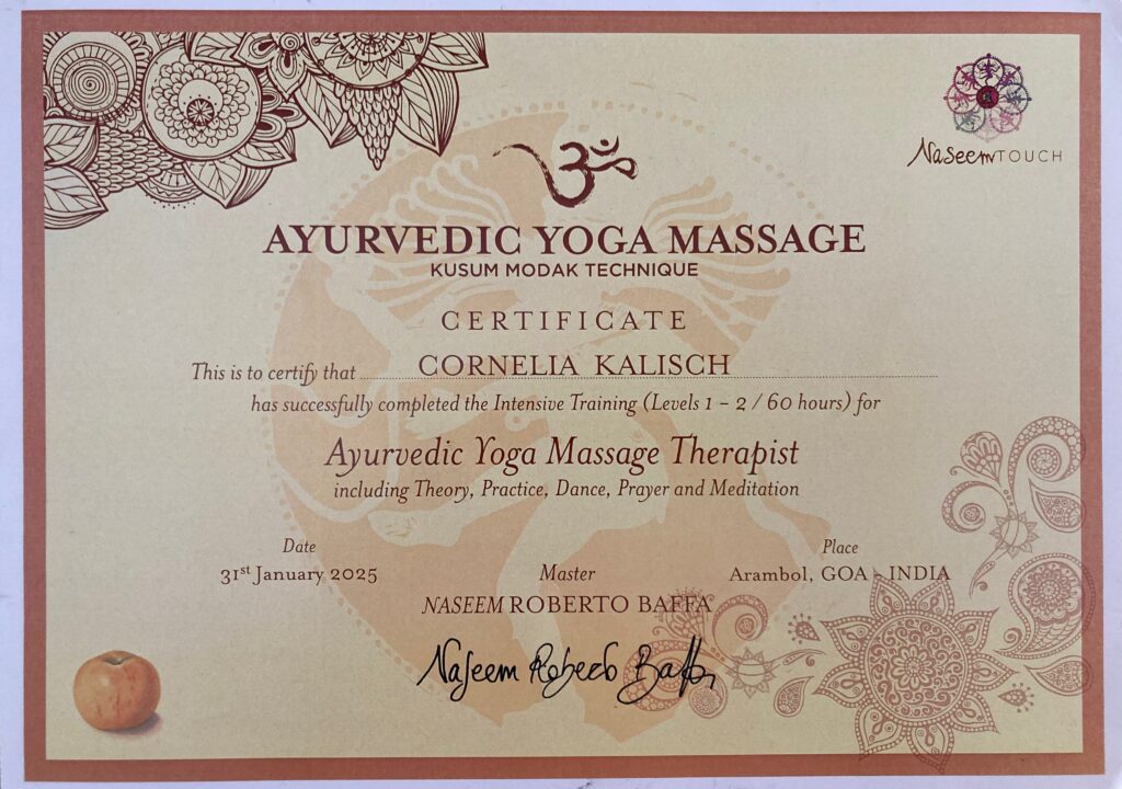 Die Kombination aus sanften und tiefen Massage Griffen mit ätherischen Ölen, passiven Yoga-Dehnungen und bewusster Atmung führt zu nachhaltiger Regeneration und neuer Lebenskraft.